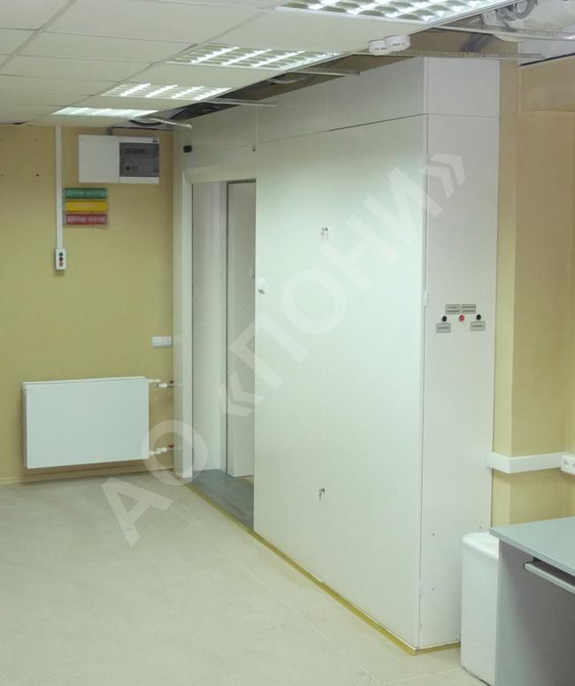Радиационно-защитная автоматическая откатная дверь в БУЗ ОО «Клинический онкологический диспансер» (г. Омск, ул. Завертяева, д.9, корп. 1).