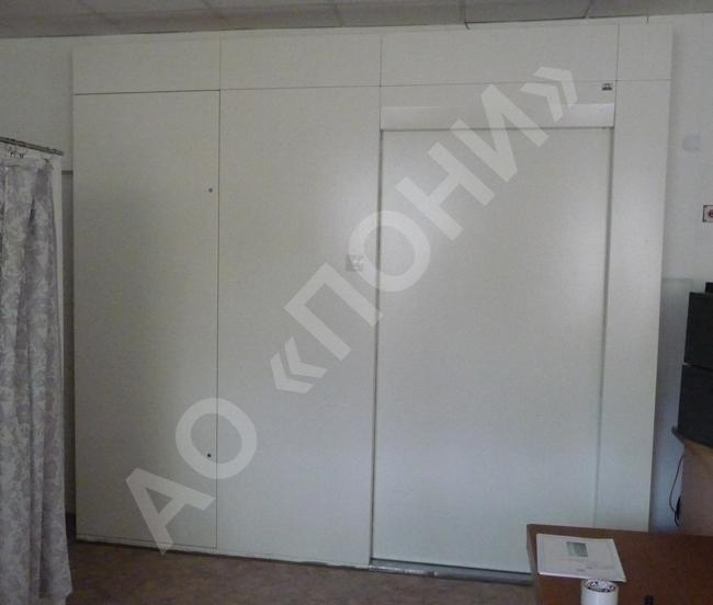 Основные параметры: свинец 12 мм, полиэтилен 120 мм, проём 2210 х 1130 мм, масса полотна 1800 кг.