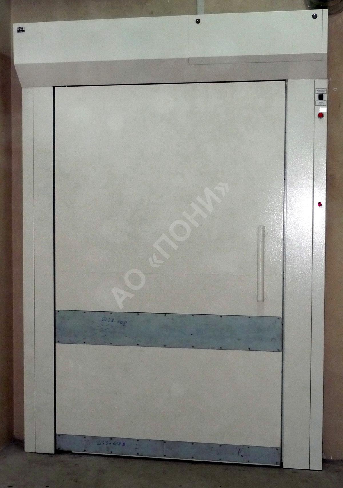 Основные параметры: пневмопривод, свинец 20 мм, ПВД 200 мм, проём 1020 х 2100 мм, масса полотна 1400 кг; автоматический, радиационно-защитный порог.