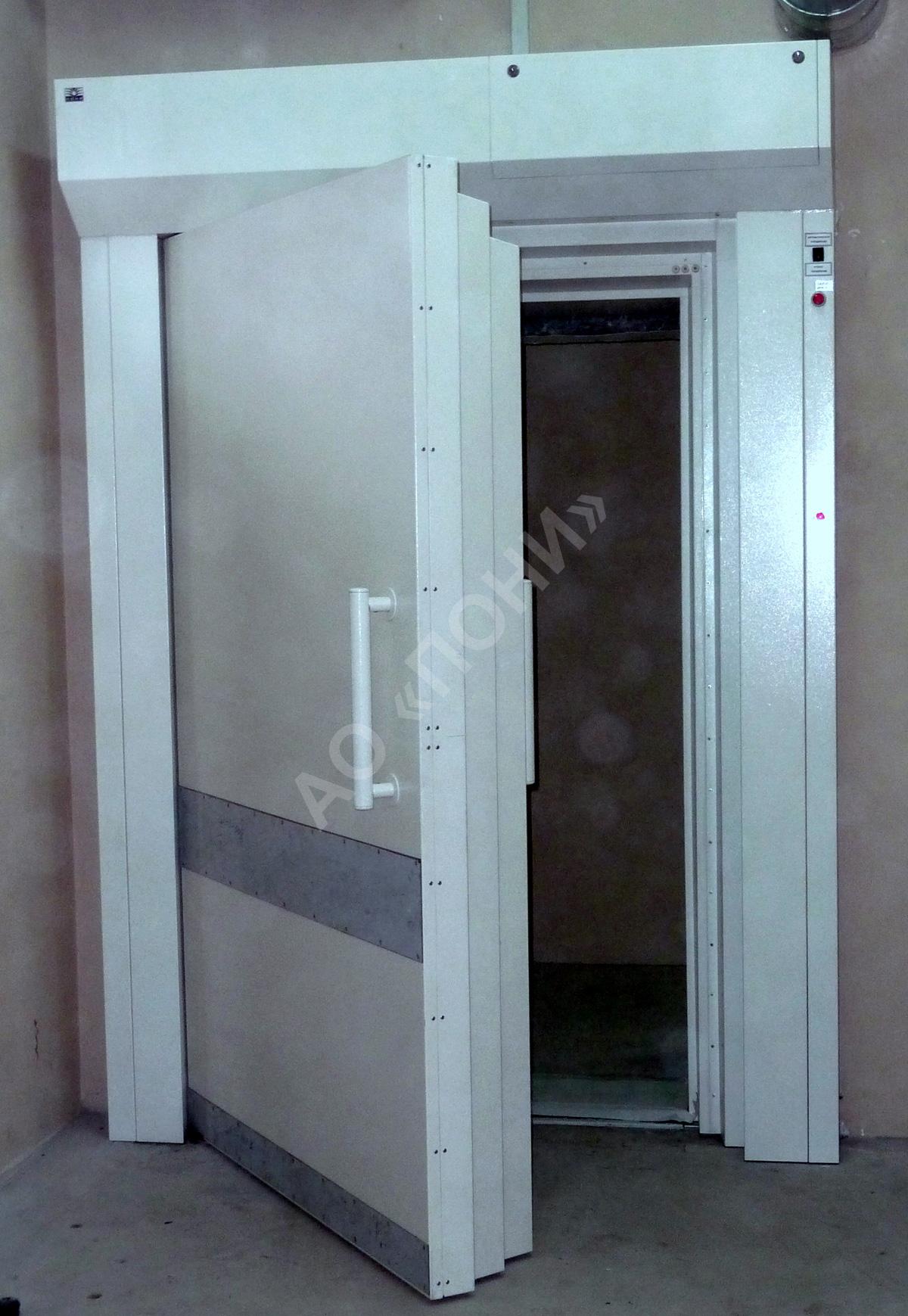 Основные параметры: пневмопривод, свинец 20 мм, ПВД 200 мм, проём 1020 х 2100, масса полотна 1400 кг; автоматический, радиационно-защитный порог.