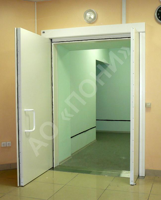 Комплекс из двух рентгенозащитных автоматических распашных дверей в радиологическом корпусе Вологодского областного онкологического диспансера